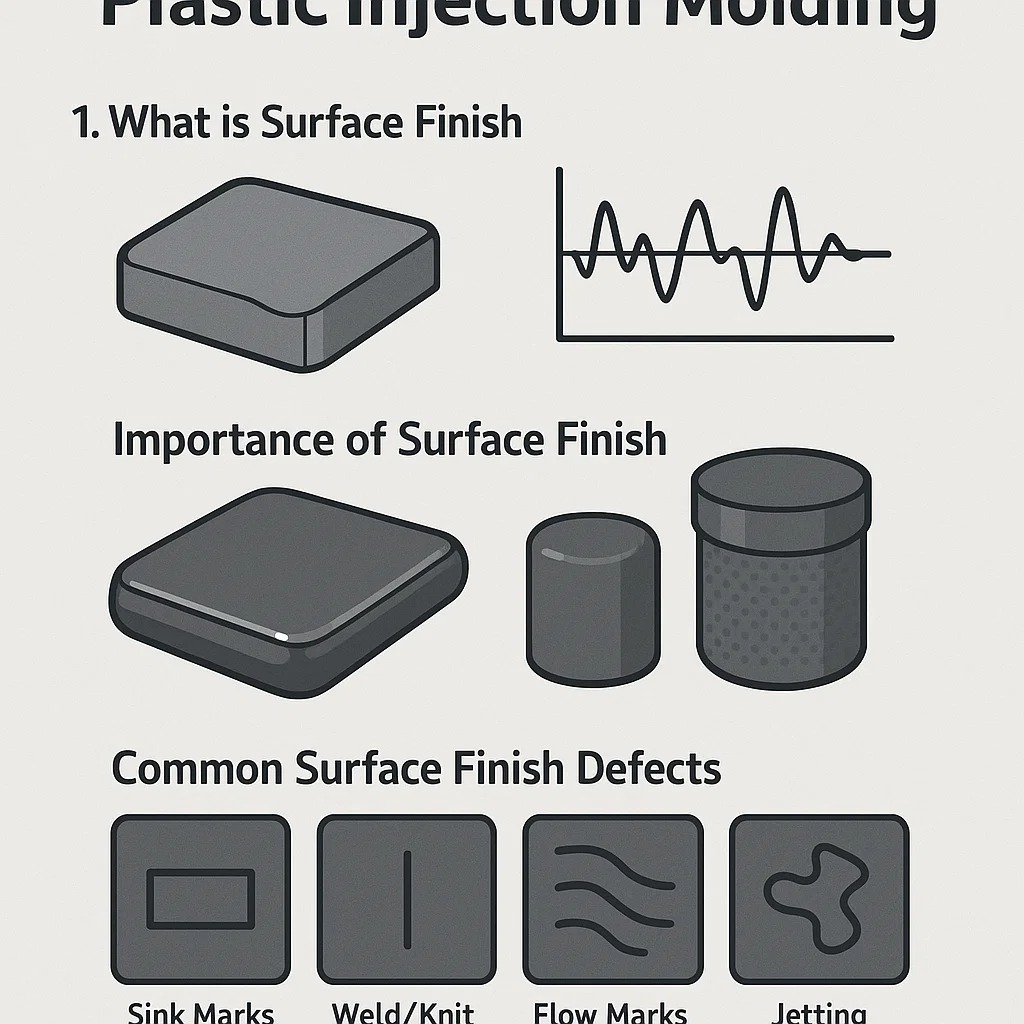 - Definizione: Il finitura superficiale di una parte in plastica stampata a iniezione si riferisce alla struttura, alla levigatezza o al contono dell'esterno del componente. È un riflesso diretto della superficie della cavità dello stampo.
