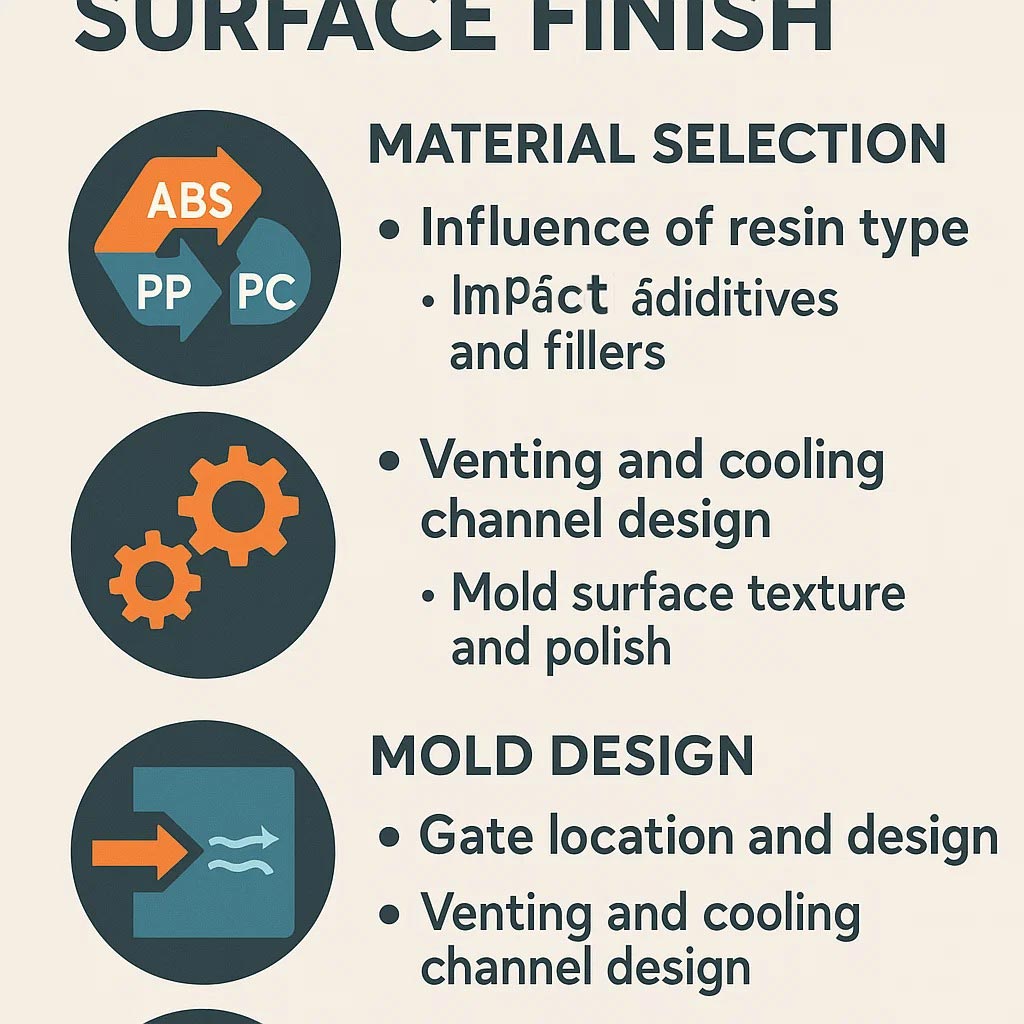 - Precisione degli utensili: Il mold dictates the maximum achievable finish. Investing in appropriate lucidatura degli stampi (ad uno specifico R a valore o Grado SPI ) o applicando l'alta precisione testurizzazione superficiale (chimico o laser) è essenziale. Giusto ventilazione e uniform progettazione del canale di raffreddamento non sono negoziabili per prevenire difetti.