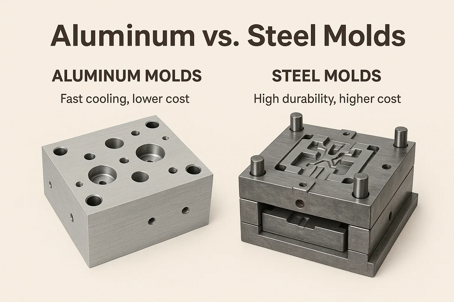 Nella produzione, lo stampo giusto è fondamentale per la creazione di parti di alta qualità. Il materiale che scegli per quello stampo influisce direttamente su tutto, dalla velocità di costo e produzione alla qualità del prodotto finale. Mentre sono disponibili molti materiali, due si distinguono come i più comuni e versatili: alluminio E acciaio .