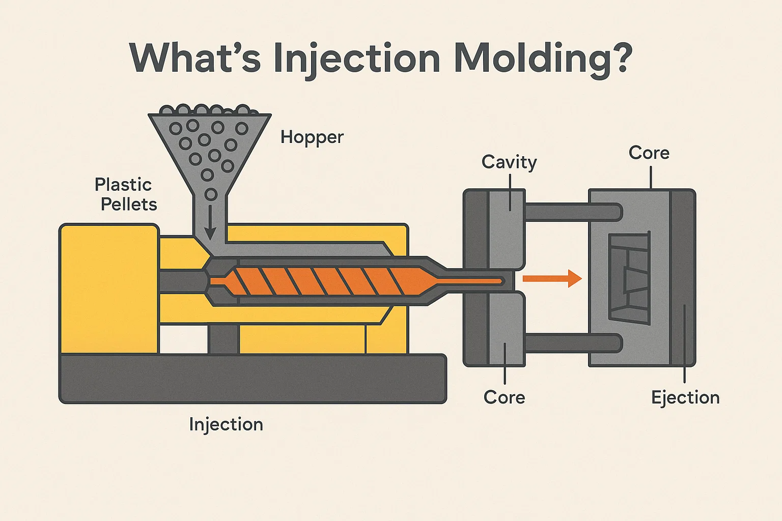 Al suo centro, stampaggio ad iniezione è un metodo sofisticato per la produzione di parti in plastica, dalle custodie dei telefoni e i tappi di bottiglia ai cruscotti delle automobili e ai dispositivi medici. Funziona iniettEo materiale plastico fuso, in genere a termoplastico —in una cavità dello stampo raffreddata appositamente progettata. Una volta che la plastica si raffredda e si solidifica, lo stampo si apre e la parte finita viene espulsa.